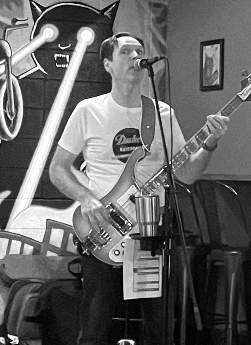 Joe started playing Bass in the mid-80’s, at the encouragement of his friends who had already bought guitars. He took a break for a few years but picked it up again while living in Chicago in the late 90’s. While in Chicago, Joe appeared in Dashboard Aspen, Yer Mothers Lovers (a regular in the Chicago Punk circuit) and the Progressive Rock band Outgrowth. The Chicago days produced a lot of original songs, and Joe has original compositions on the soundtrack to the film Lana’s Rain, as well as and EP from YML and a full length album from Outgrowth. You might even find one or two songs that he co-wrote on the Dashboard Aspen Soundcloud page.